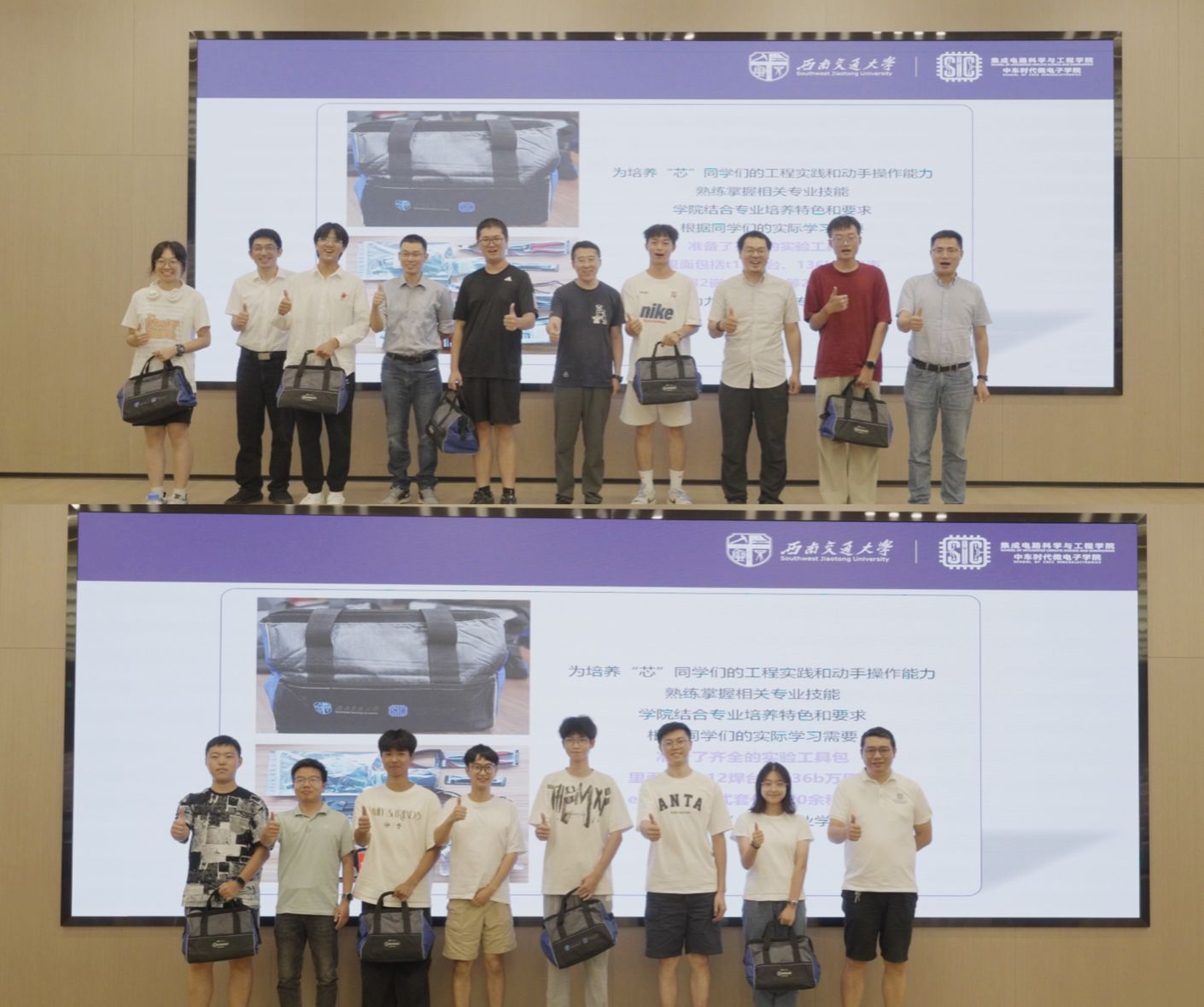 典礼上,与会领导嘉宾为新生代表赠送实验工具套装等新生礼物,勉励大家勤思考、多动手,不断提高科创实践能力。